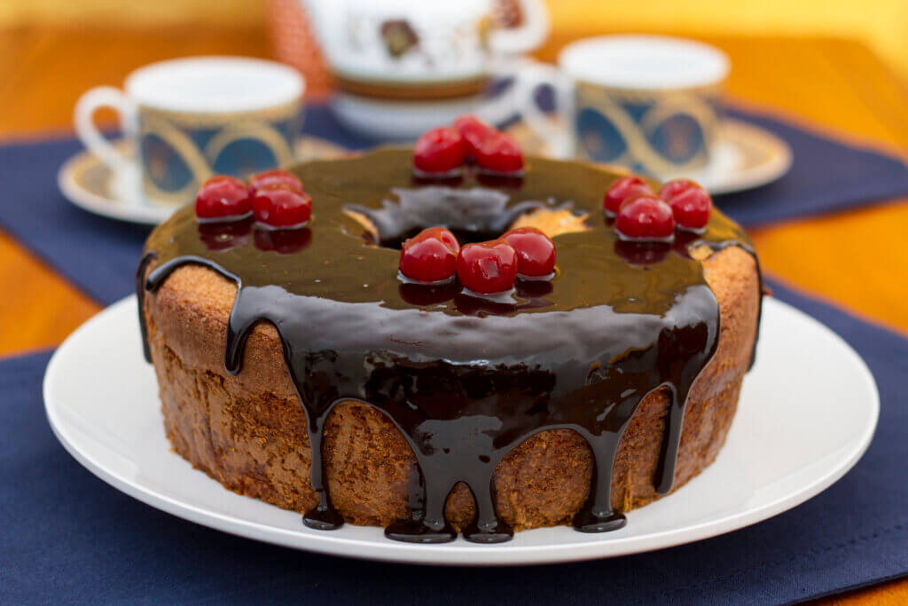 The top of the Brazilian carrot cake covered in rich brigadeiro